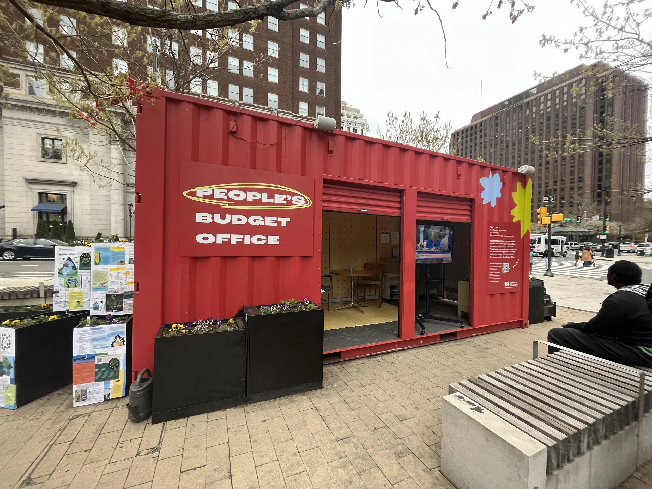 The Year 3 installation aimed to educate residents about the city budget and provide a platform for inquiry and advocacy. During the installation, resident artists, Erik Ruin, Arshayla Robinson, Maria Möller, josh graupera, hosted the budget office and contributed creative interpretations of the budget. Participants learned about the proposed budget through printed resources, council hearings, and convenings and were encouraged to add to an idea board of funding priorities and advocate at public hearings. During the installation, artists were invited to interpret the budget and visualize issues such as libraries, illegal dumping, art in schools, taxes and progressive revenue, alternatives to incarceration, and harm reduction. The funding priorities gathered on-site helped shape the People’s Budget Report and were shared with Philadelphia’s City Council and the City’s Budget Office.